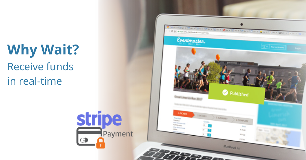 By using Eventmaster you will receive your funds per transaction in real time to your merchant account. To facilitate this model Eventmaster are using Stripe Connect to manage transactions.